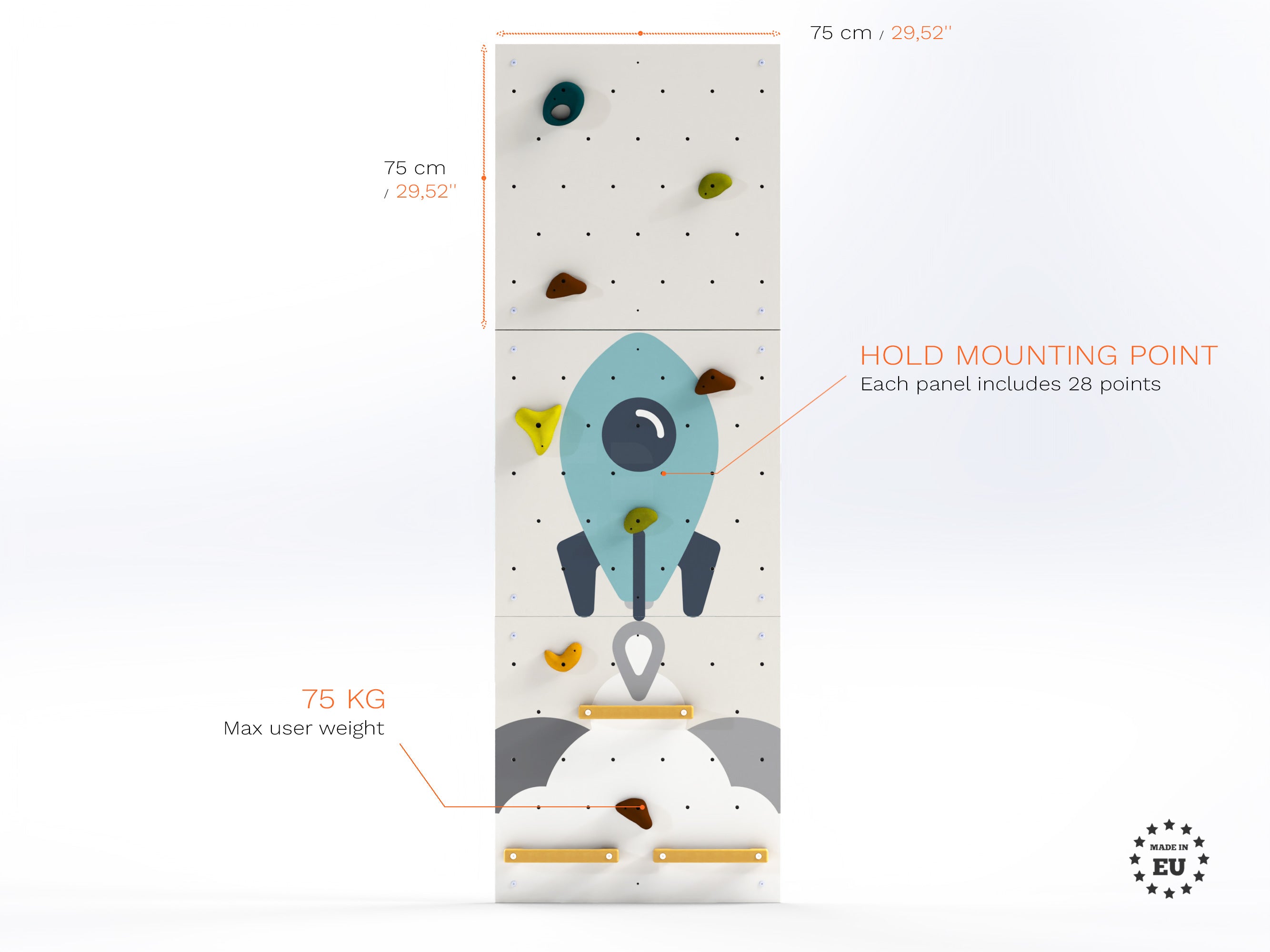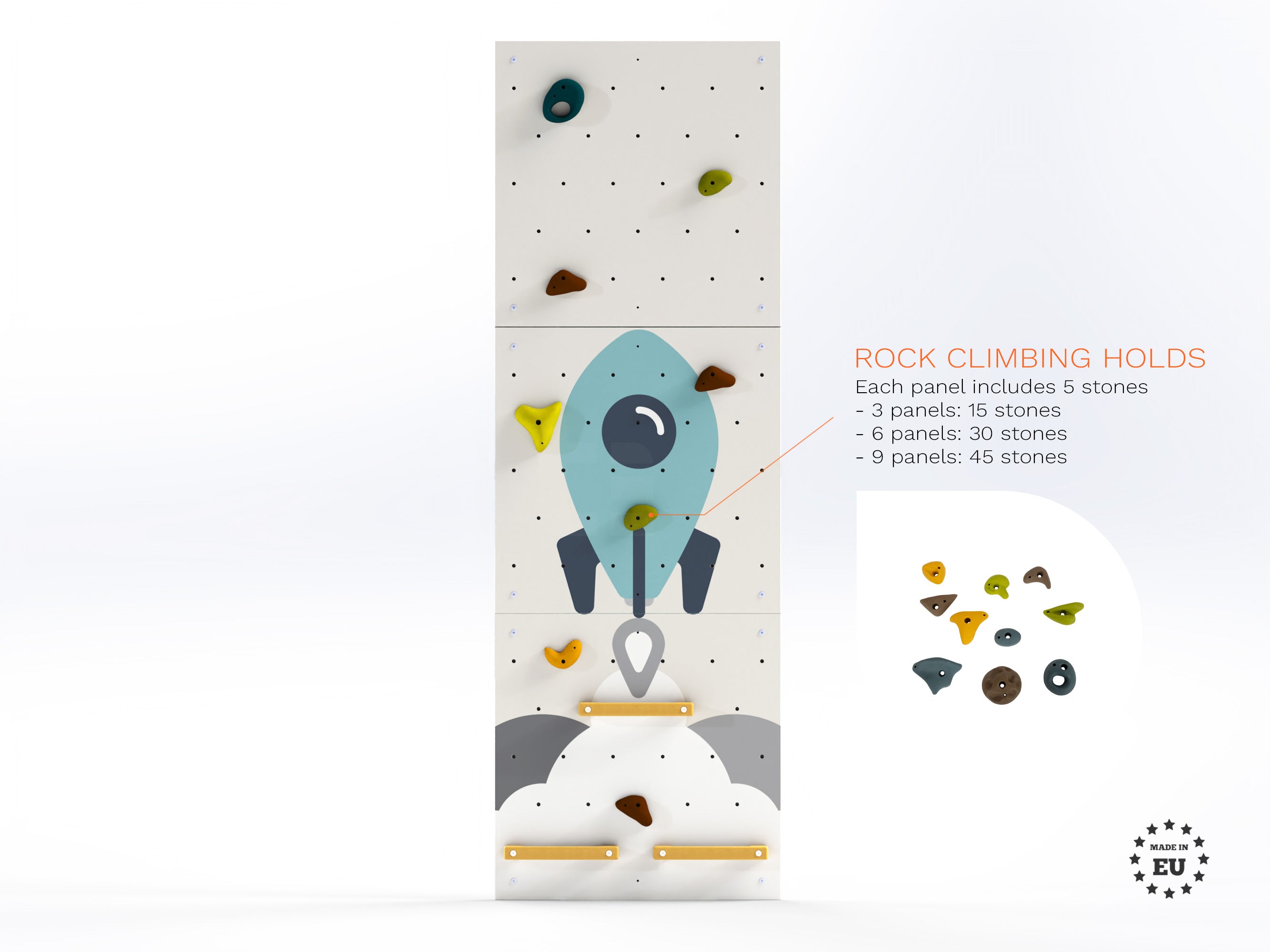 ✔ We recommend that you also purchase a mat or other safety element for the climbing wall.