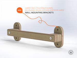 Our classic ladder bars (also known as monkey bars) now come with special wall-mounting brackets. That means you can install them not only on climbing panels, but also directly on wood, concrete, brick, or drywall walls.